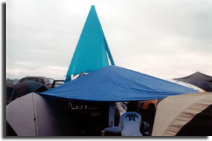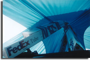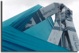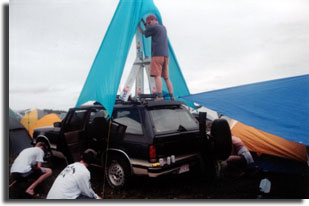 finally time to add the 40 feet of teal lycra. Tye each corner of