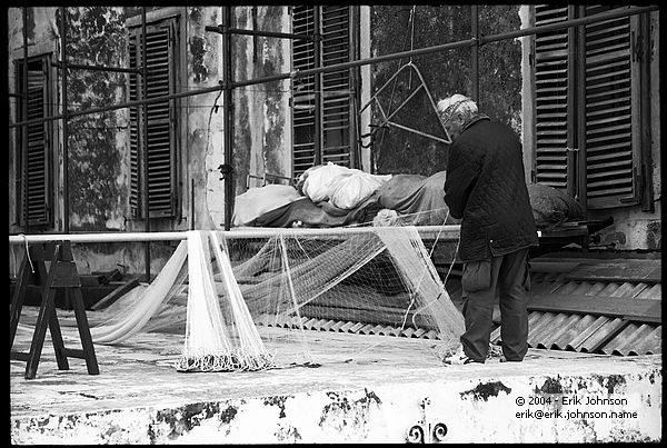 Fisherman clearing his nets